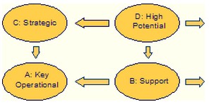 De fire kategorier er: A. Key Operational B. Support C. Strategic D. High potential